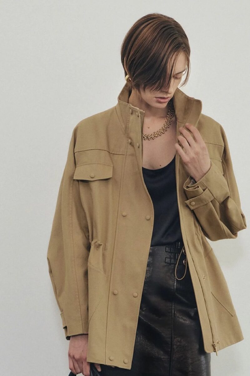門襟採拉鍊+隱形壓釦雙重開合,俐落擋風